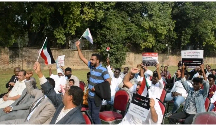 وقفة تضامنيا للجالية السودانية في نيودلهي احتجاجا على انتهاكات المليشيا الارهابية