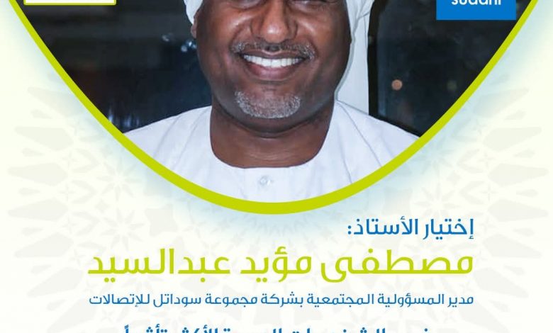 اختارت الشبكة الإقليمية للمسؤولية المجتمعية عن الشخصيات العربية الأكثر تأثيرًا في مجال المسؤولية المجتمعية لعام (2020) فئة المحترفين،الاستاذ مصطفى مؤيد عبد السيد مدير المسؤولية المجتمعية بشركة مجموعة سوداتل للاتصالات بجمهورية السودان ضمن الشخصيات العربية الأكثر تأثيرًا