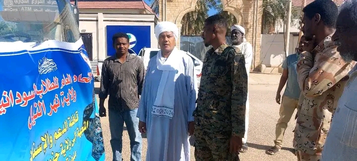 وأكد الأستاذ محمد السر عوض الكريم رئيس الإتحاد العام للطلاب السودانين بالولاية وقوفهم مع القوات المسلحة والقوات المساندة لها والدفاع عن الأرض والعرض، موضحا أن القافلة المتجهة لمنطقة كادوقلي تحتوي على مواد غذائية واحتياجات شهر رمضان المبارك وتاتي برعاية السيد والي ولاية نهر النيل.